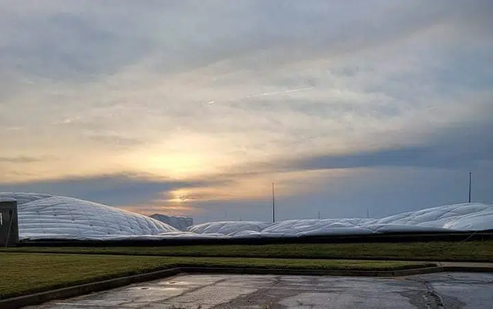 Matt Rettke sent the following photos to WMBD News of the storm damage sustained by the dome Saturday morning.