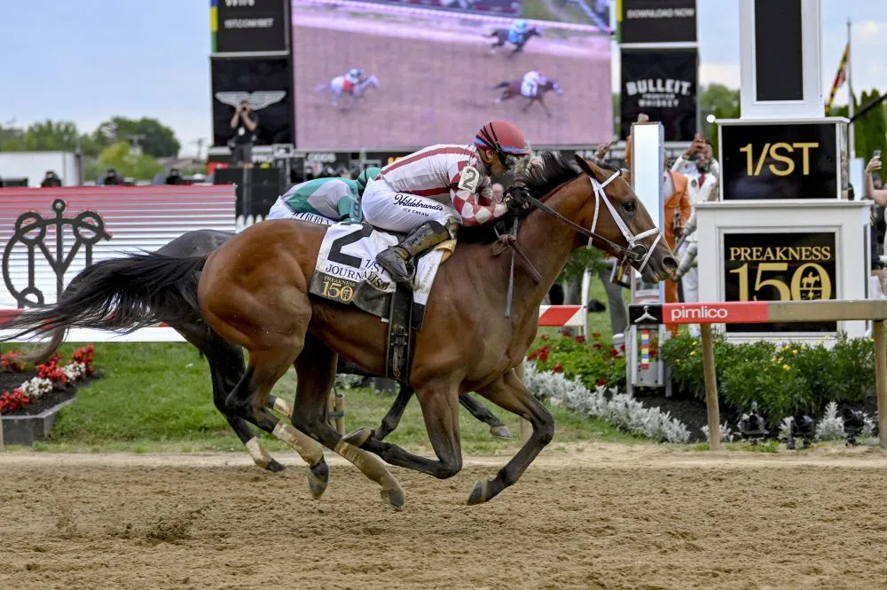 (Reuters/Field Level Media) – Journalism won the 150th running of the Preakness Stakes on Saturday at Baltimore’s Pimlico Race Course in stunning fashion, catching longshot Gosger just before the wire after recovering from a bump down the stretch.