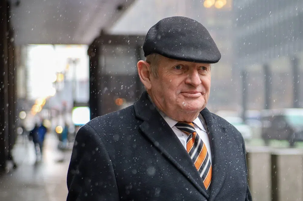 Surrounded by media, former Democratic House Speaker Michael Madigan, the longest-serving legislative leader in U.S. history, departs the Dirksen Federal Courthouse on June 13, 2025, after receiving a 7 ½-year prison sentence on corruption charges. He was also fined $2.5 million. (Capitol News Illinois photo by Andrew Adams)