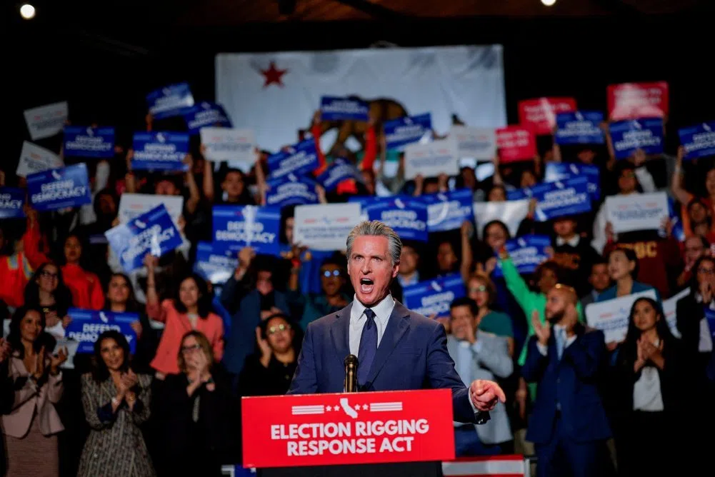 Newsom said his proposal, aimed for a special ballot on November 4, would create five new Democratic U.S. congressional seats in California, offsetting any seats Republicans can gain at Trump’s behest by redrawing district lines in Texas less than four years after they were last revamped.