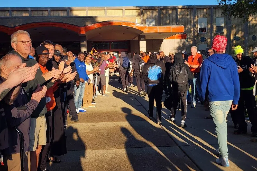 Garner and the other men came to clap and cheer on the Rams as they made their way to Manual to start a brand new school week.