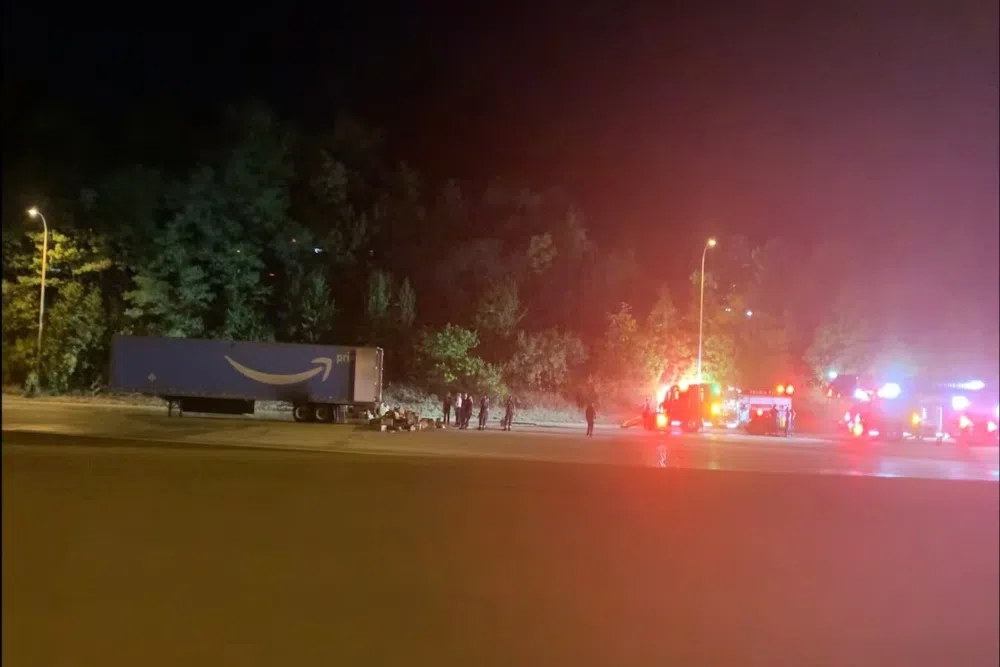 The contents of the Amazon Prime truck were destroyed. A portion of the trailer was also damaged. Total damage is estimated at $500,000.