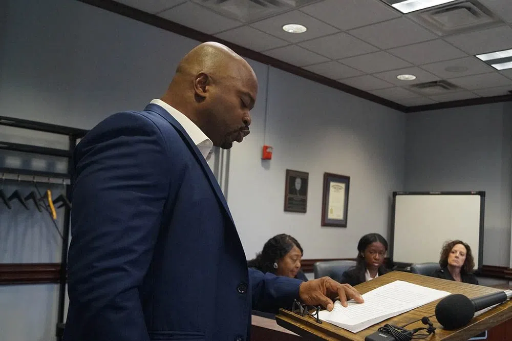 Wendell Robinson, executive director of the Restore Justice Foundation, testifies before an administrative panel Tuesday, Nov. 4, 2025, in opposition to an Illinois Department of Corrections program of scanning inmates’ incoming mail to reduce the flow of drugs and other contraband into state prisons. (Capitol News Illinois photo by Peter Hancock)