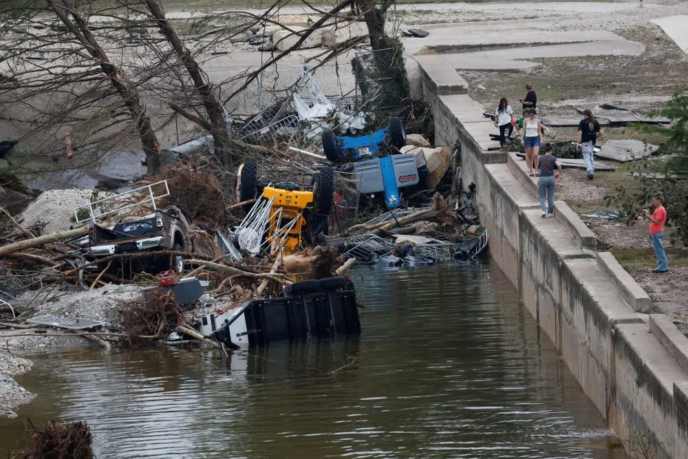 Ed Hammond Jul 05, 2025 People stand near debris following flash flooding, in Kerrville, Texas, U.S. July 5, 2025. REUTERS/Marco Bello