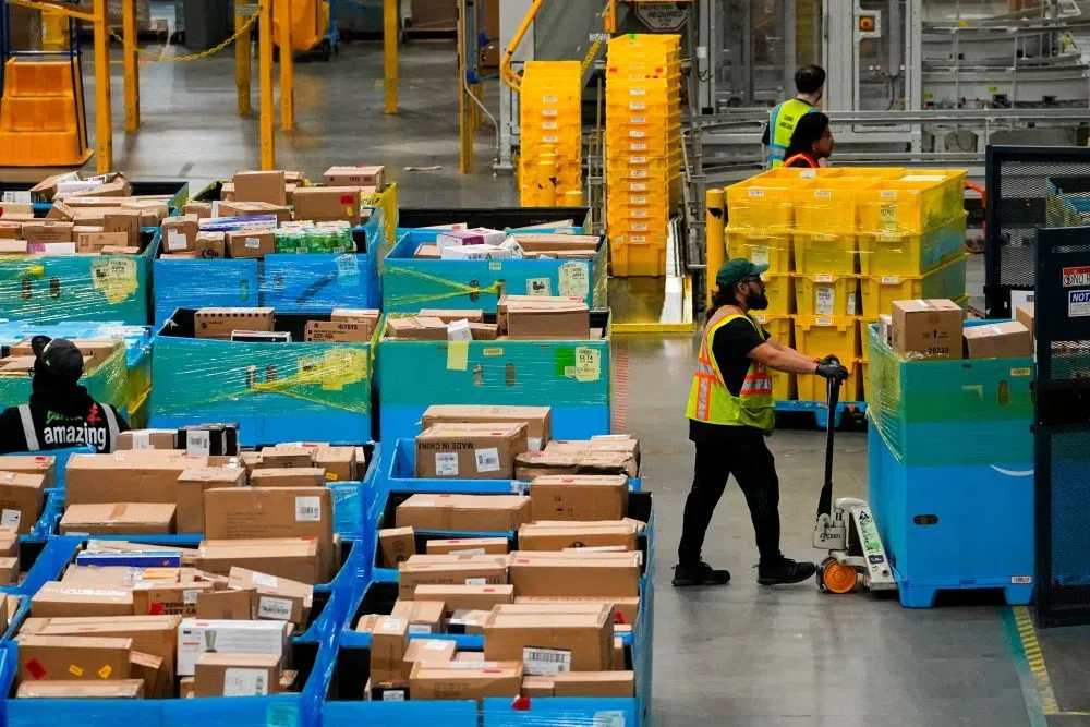 Julia Bradley Dec 02, 2025 Workers move products during Cyber Monday at Amazon's fulfilment center in Robbinsville, New Jersey, U.S., December 1, 2025. REUTERS/Eduardo Munoz