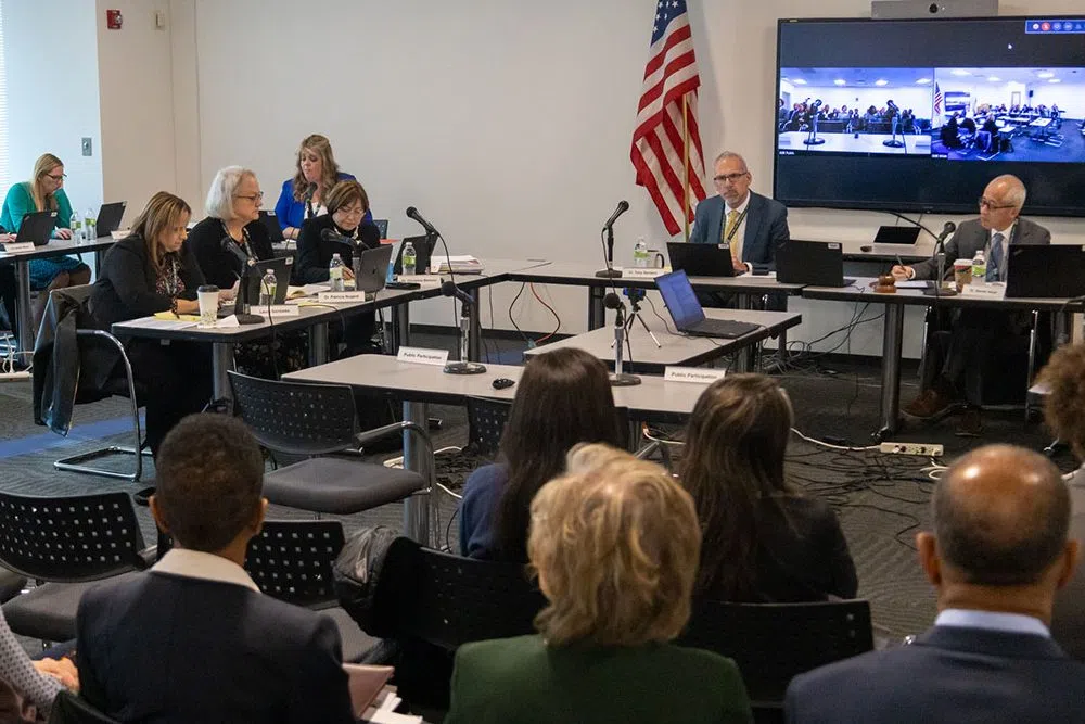 Members of the Illinois State Board of Education and Superintendent Tony Sanders are pictured at a 2023 board meeting. (Capitol News Illinois photo by Andrew Adams)