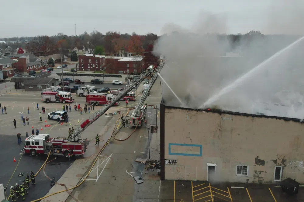 Caleb Kelch Nov 21, 2025 Canton Fire Department tackle a fire that a collapsed a roof of a downtown Canton building.