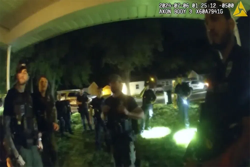 TJ Carson Dec 03, 2025 Ex-Sangamon County Sheriff’s Deputy Sean Grayson’s body camera footage shows the officers who greeted him on July 6, 2024, as he exited the home of Sonya Massey after fatally shooting her. Grayson disparaged Massey and called her “crazy” in the video, which his attorneys say should not have been shown in the trial that led to his second-degree murder conviction. (Screenshot from body camera footage)