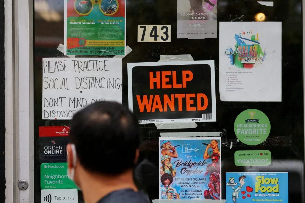 Julia Bradley Jun 26, 2025 FILE PHOTO: A pedestrian passes a "Help Wanted" sign in the door of a hardware store in Cambridge, Massachusetts, U.S., July 8, 2022. REUTERS/Brian Snyder/File Photo