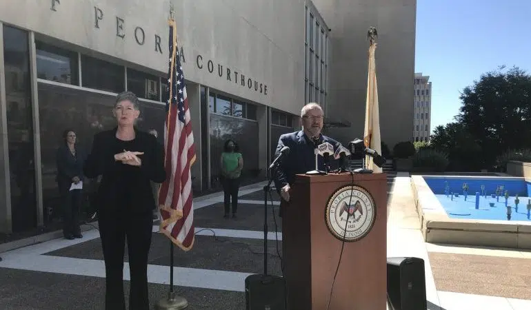 PEORIA, Ill. -- Outside the Peoria County Courthouse Friday morning, city leaders discuss ending social injustice in the community and amendments to the Peoria County budget. County Board Chair Andrew...