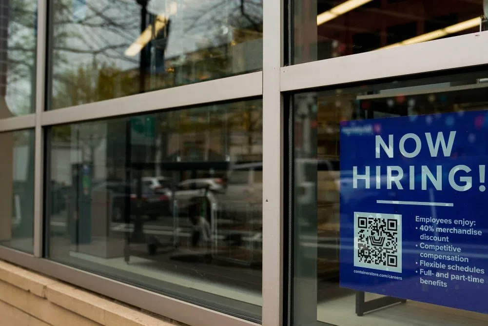 Julia Bradley Feb 22, 2024 An employee hiring sign with a QR code is seen in a window of a business in Arlington, Virginia, U.S., April 7, 2023. REUTERS/Elizabeth Frantz/File Photo