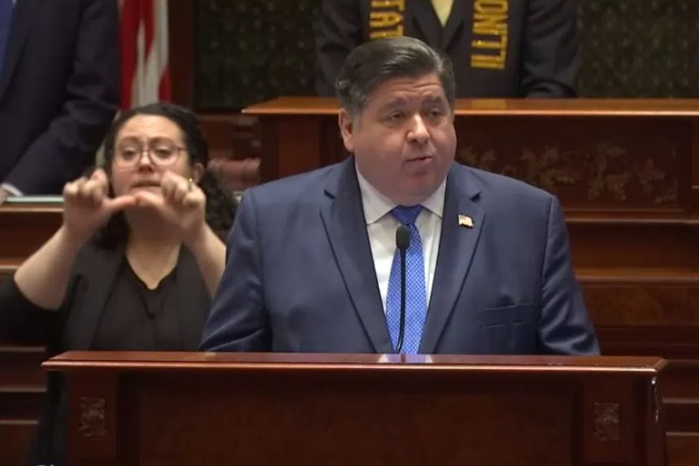 Will Stevenson Feb 21, 2024 Illinois Gov. JB Pritzker gives his annual State of the State speech Feb. 21, 2024, to a joint session of the Illinois General Assembly. (Screen capture of illinois.gov web stream)