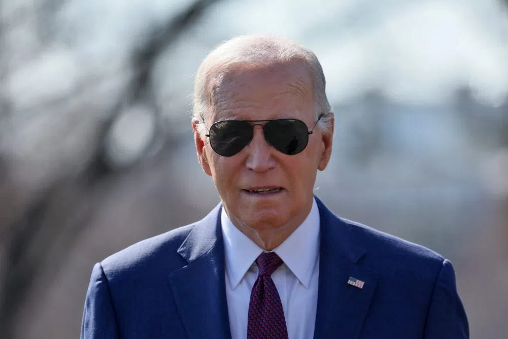 Julia Bradley Feb 21, 2024 U.S. President Joe Biden walks up to members of the news media to give a statement before boarding Marine One for travel to California from the South Lawn of the White House in Washington, U.S., February 20, 2024. REUTERS/Leah Millis