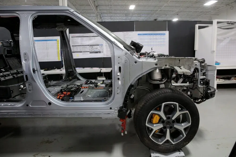 TJ Carson Feb 21, 2024 A partially dismantled Rivian R1T electric truck is seen during its teardown at the Munro & Associates headquarters in Auburn Hills, Michigan, U.S., June 3, 2022. REUTERS/Rebecca Cook/File Photo