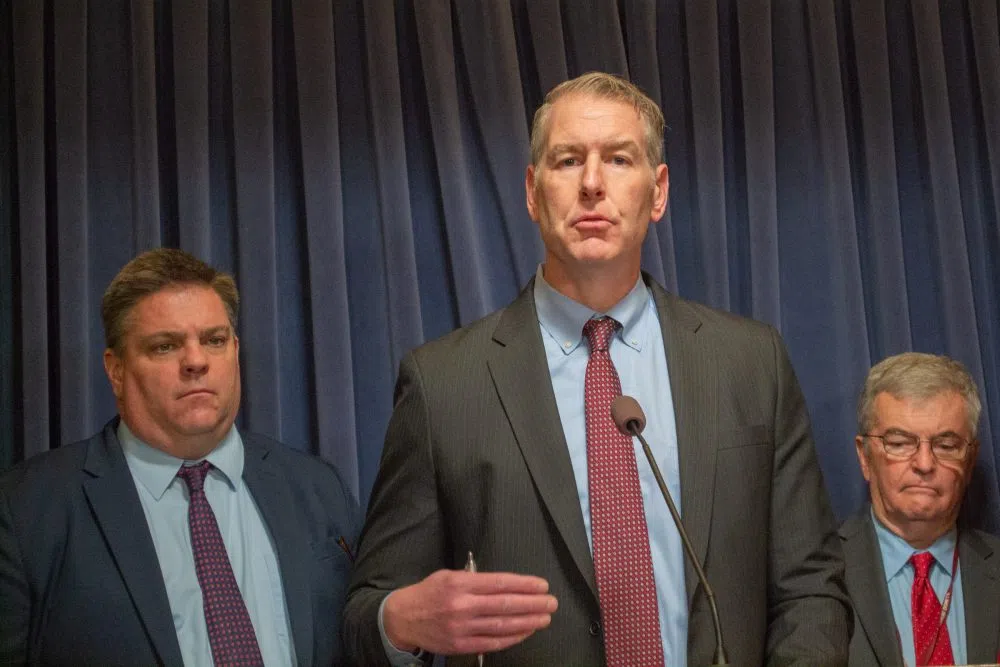 TJ Carson Feb 20, 2024 PHOTO: Senate Minority Leader John Curran (center) appears with fellow GOP Sens. Chapin Rose (left) and Tom Bennett (right) at a Statehouse news conference on Tuesday. (Capitol News Illinois photo by Jerry Nowicki)