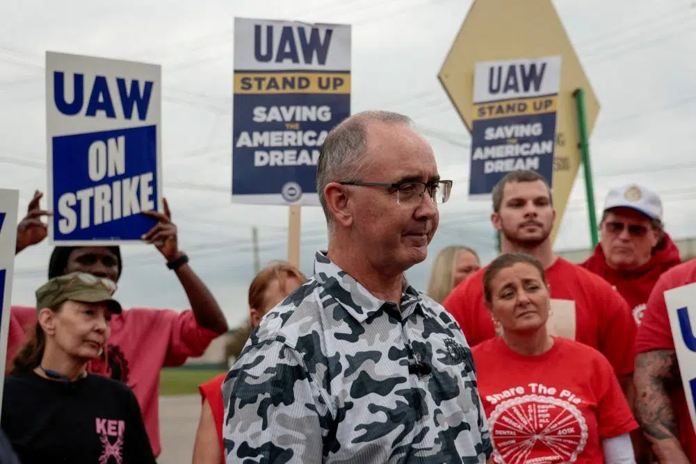 Julia Bradley Oct 09, 2023 FILE PHOTO: Striking United Auto Workers members from the General Motors Lansing Delta Plant picket on a street corner in Delta Township, Michigan U.S. September 29, 2023. REUTERS/Rebecca Cook/File Photo