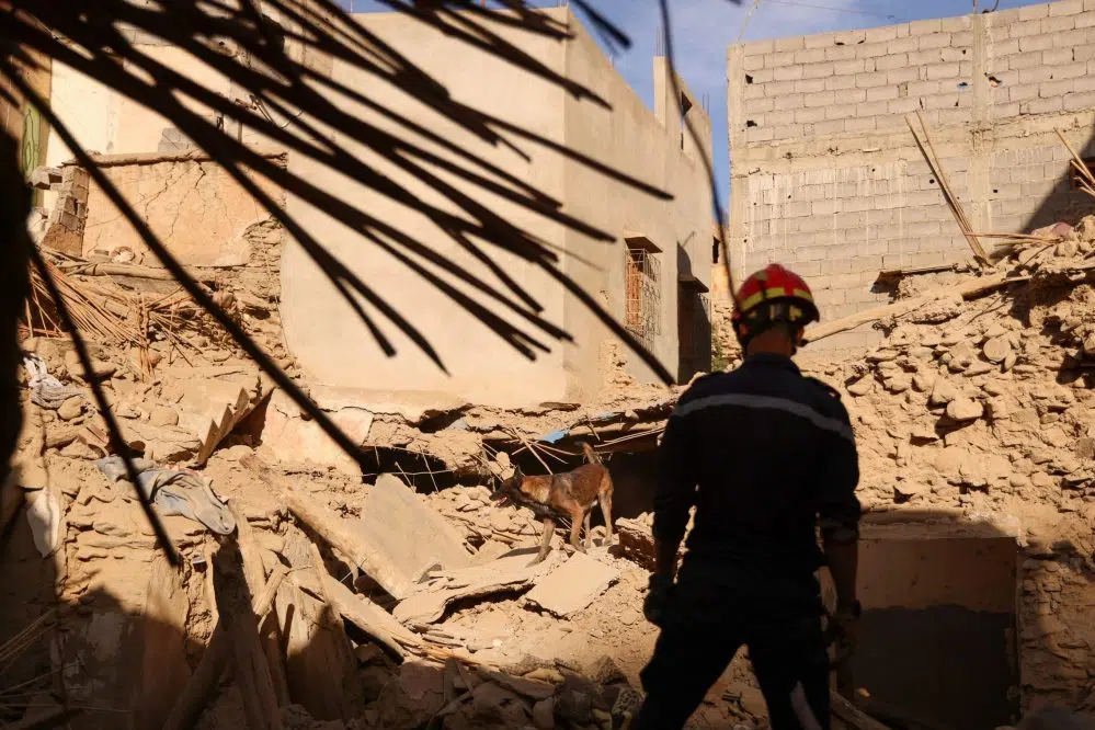 Julia Bradley Sep 11, 2023 An emergency worker and a dog search bodies on the rubbles, in the aftermath of a deadly earthquake, in Amizmiz, Morocco, September 10, 2023. REUTERS/Nacho Doce